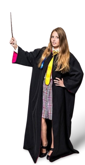 Аниматор Гермиона отлично дополняет праздник в котором участвует Гарри Поттер, ведь эти два персонажа всегда бок о бок участвуют в магических баталиях, головокружительных приключениях, разгадывают загадки и веселятся.