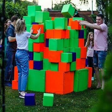 Команда Party Pups привезет к месту проведения торжества несколько десятков кубиков из мягкого поролона. Вести праздник будет профессиональный актер-аниматор, вместе с которым дети будут строить стены и дома, устраивать танцы, оригинальную фотосессию с различными поролоновыми аксессуарами (усами, губами, шляпами, париками, забавными очками и др.). Кроме того, можно устроить бои без правил. Все игры абсолютно безопасны и не травматичны. Все торжество проходит под динамичную, энергичную музыку.