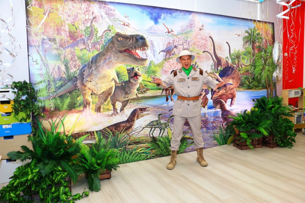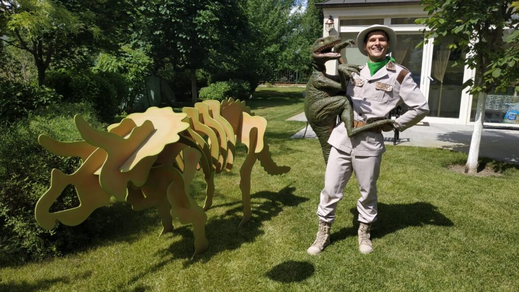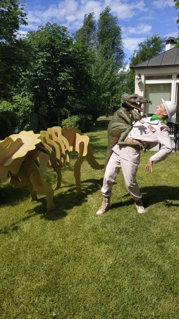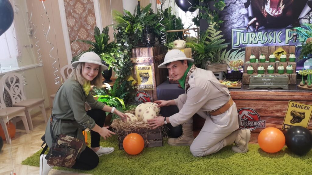 Аниматоры в реалистичных костюмах динозавров вместе со своими друзьями и по совместительству ведущими археологами проведут необычный праздник.