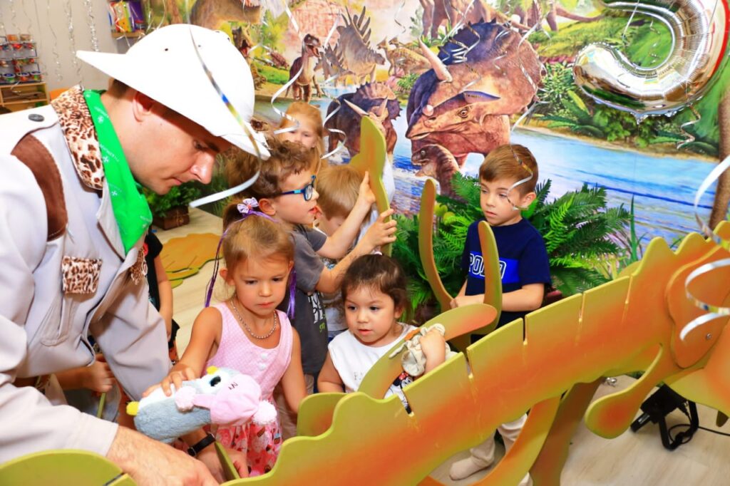 Дети смогут засунуть голову в пасть Тиранозавра, прокатиться верхом на спине трицератопса, пройти квест и приблизиться к разгадке тайны динозавров.