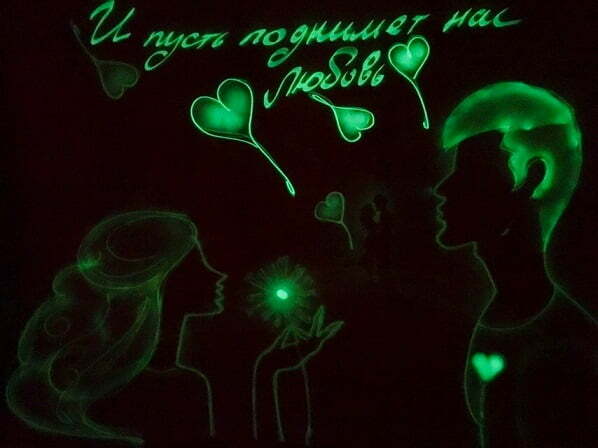 Световая картина рисуется в режиме реального времени, художник добавляет все новые и новые детали, что завораживает и вызывает искренний интерес зрителя. Наблюдая за тем, как постепенно появляется светящаяся картина, Вы переживаете всю историю, которую рисует художник.
