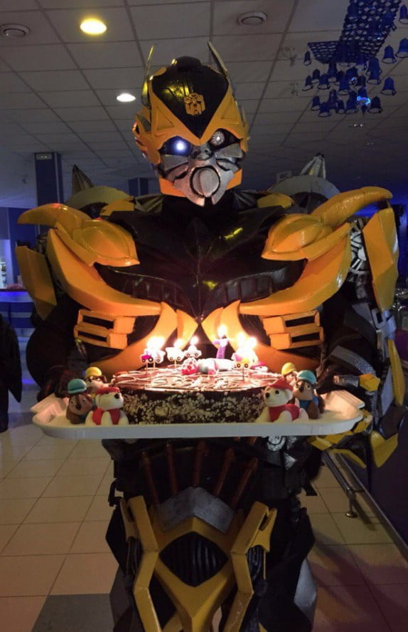 Поздравление (открытка) Бамблби. Самое невероятное поздравление как ребенка, так и взрослого человека. Трансформер с космическим голосом станет потрясающим сюрпризом + дымовые эффекты запомнятся имениннику навсегда!