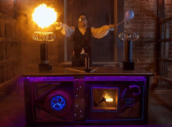 Программа лайт + две катушки Тесла с большим декоративным столом в стиле стимпанк + крио эффекты.