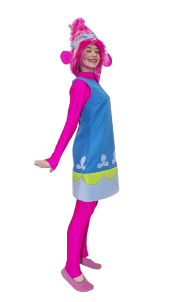 Аниматор Розочка Тролль – веселый персонаж на детский праздник, день рождения. В постановки Роза Тролль — главный персонаж из мультфильма «Тролли».